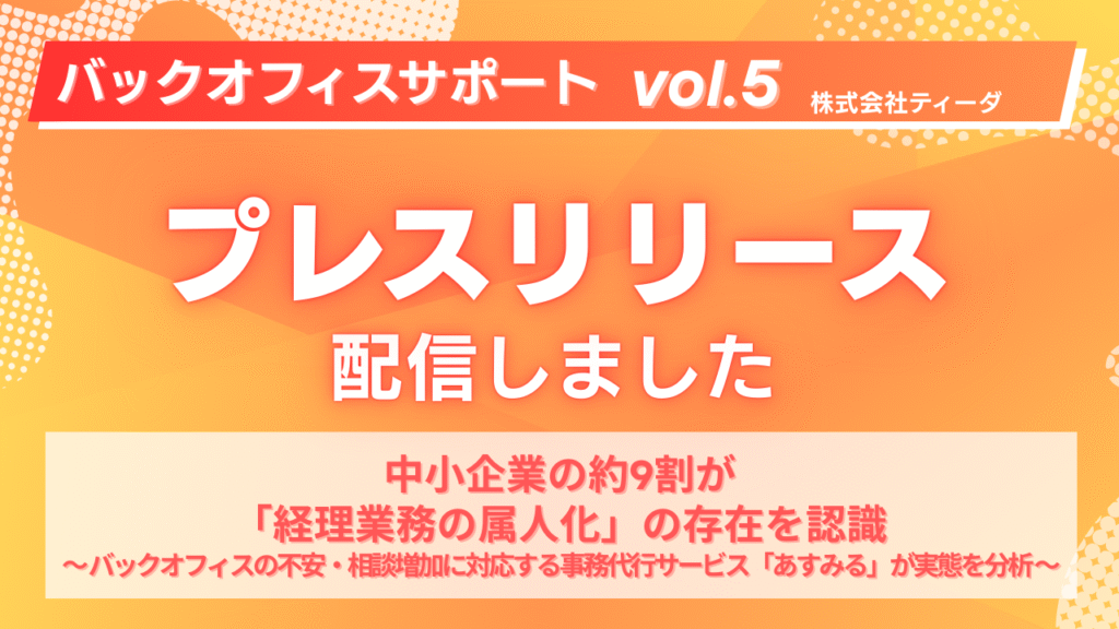 本リリースでは、外部調査データおよび、当社が提供する事務代行サービス「あすみる」に寄せられた相談内容の独自分析をもとに、バックオフィス業務の属人化がもたらすリスクや、現場で顕在化している不安について解説しています。