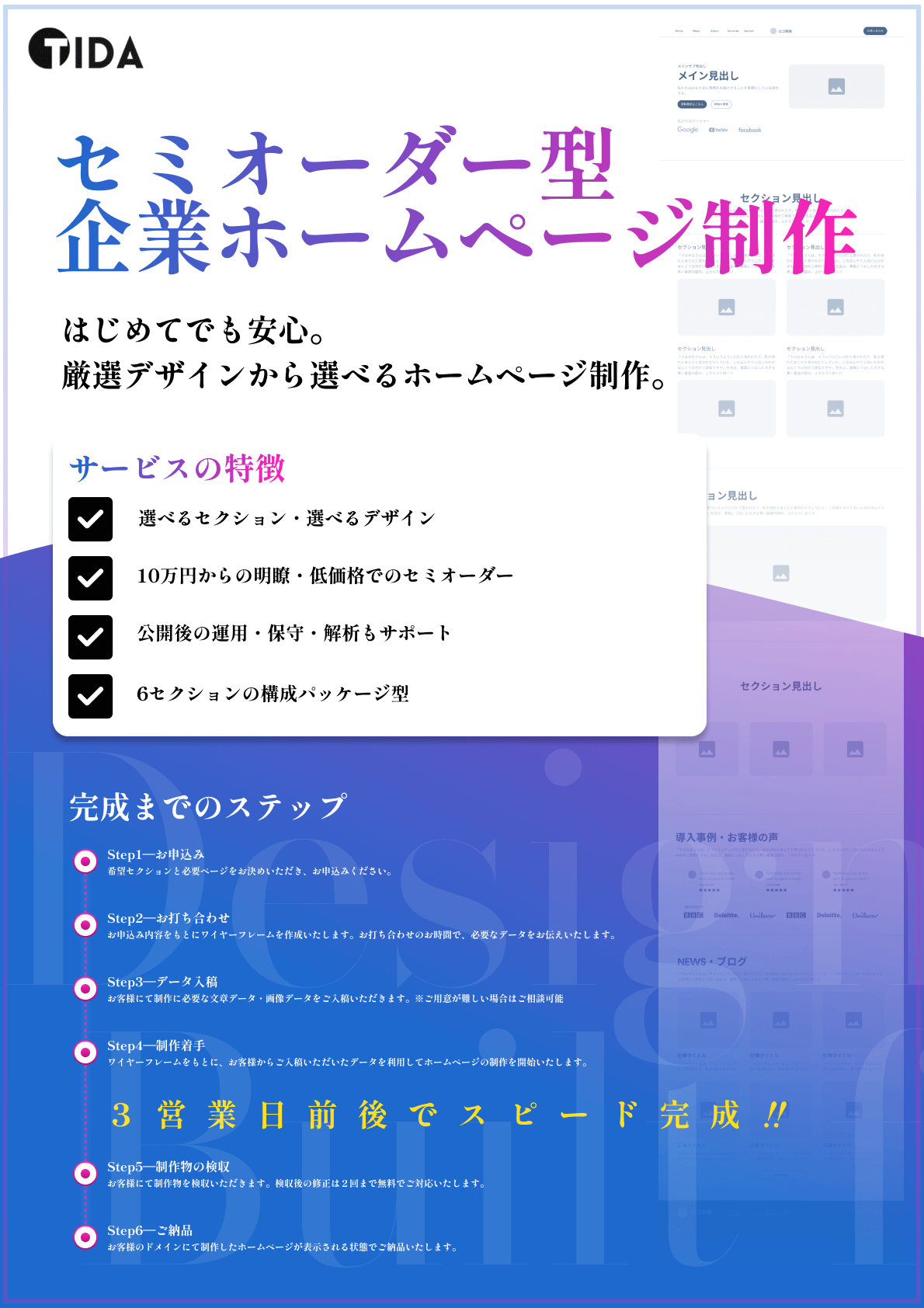 セミオーダー型 企業ホームページ制作サービスお申込み
