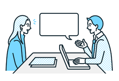 それぞれのユーザーのご要望に合わせて、メール、電話、チャット、オンラインMTGさまざまな方法でご依頼に対応しております。